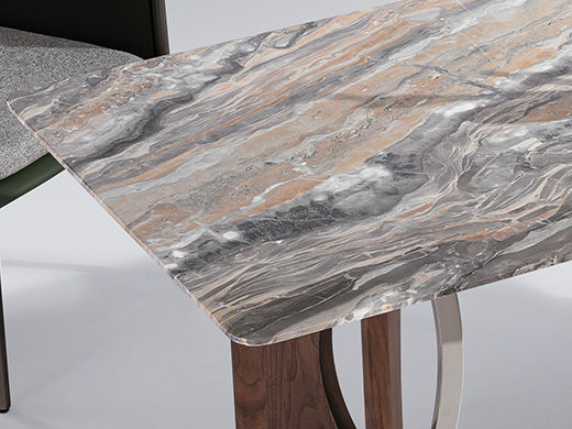 小红书系列 极简 桌面:彩晶石+底板脚架:不锈钢本色亮光+黑胡桃 1.8米餐桌