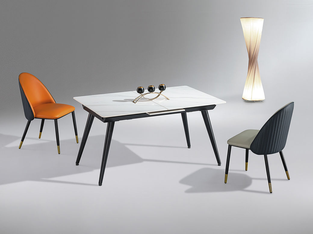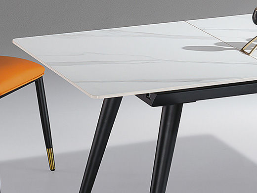 甄品家具 极简 桌面:岩板+功能件脚架:黑砂碳素钢 1.4米拉伸 功能餐桌