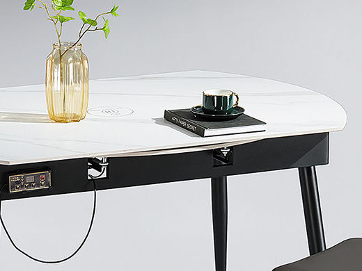 甄品家具 极简 桌面:岩板+功能件脚架:黑砂碳素钢(不带电磁炉) 1.5米拉伸 功能餐桌