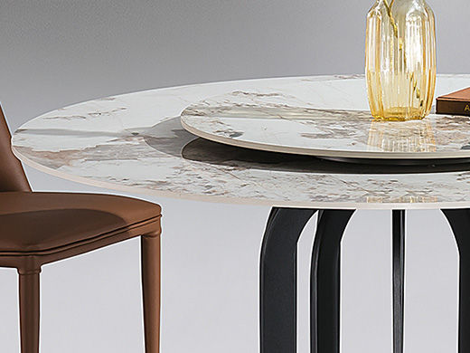 甄品家具 极简 桌面:岩板+底板脚架:黑砂碳素钢【配转盘】 1.35米餐桌