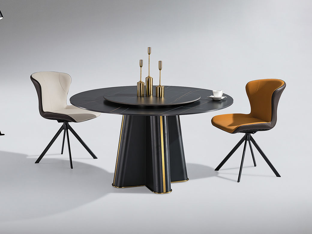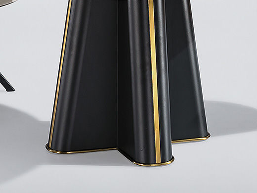 小红书系列 极简 桌面:岩板+底板脚架:黑砂碳素钢+不锈钢镀金装饰条【配转盘】 1.5米餐桌