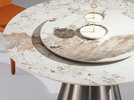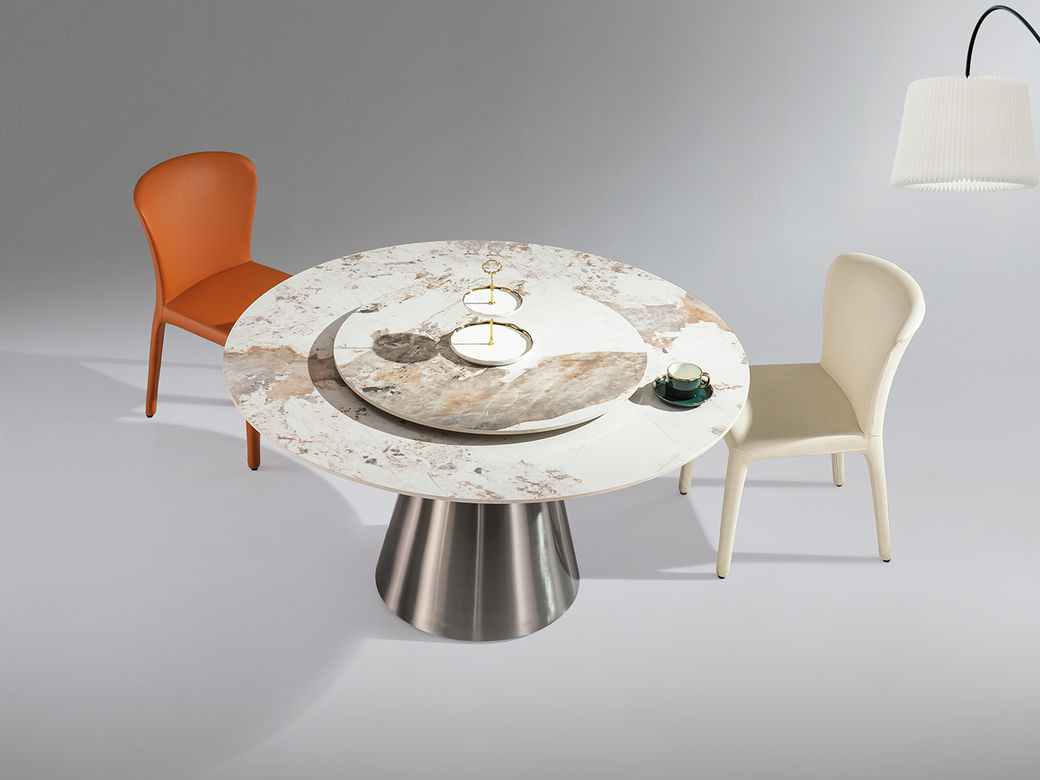 小红书系列 轻奢 桌面:岩板+底板脚架:不锈钢原色【配转盘】 1.35米餐桌