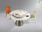 小红书系列 轻奢 桌面:岩板+底板脚架:不锈钢钛金+PU皮【配转盘】 1.35米餐桌