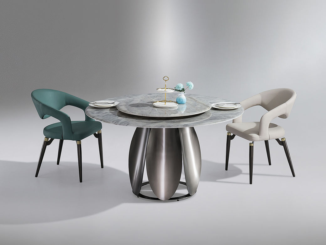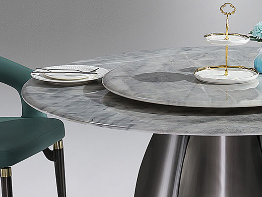 小红书系列 轻奢 桌面:彩晶石+底板脚架:不锈钢灰钛【配转盘】 1.35米餐桌