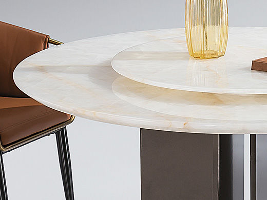 小红书系列 极简 桌面:岩板+底板脚架:碳素钢珠光棕【配转盘】 1.35米餐桌
