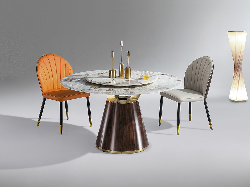 小红书系列 极简 桌面:岩板+功能件脚架:不锈钢钛金+PU皮 1.35米旋转功能餐桌¥6936