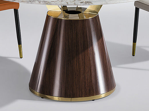小红书系列 极简 桌面:岩板+底板脚架:不锈钢钛金+黑砂碳素钢贴木纹【配转盘】 1.35米餐桌