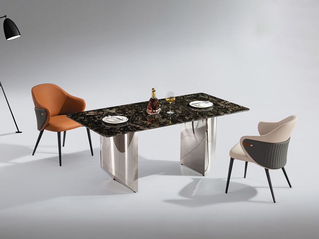 小红书系列 轻奢 桌面:天然石+绒布底板脚架:不锈钢镜面 1.8米餐桌