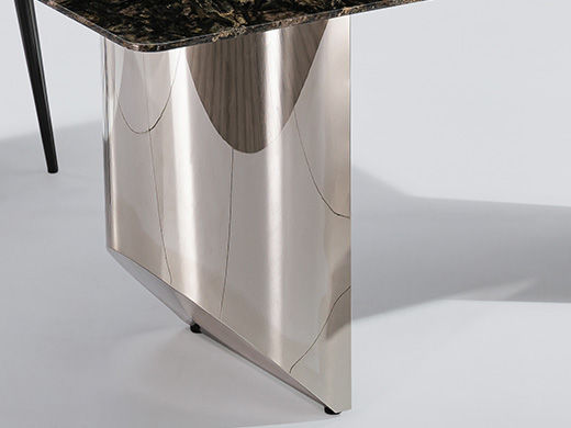 小红书系列 轻奢 桌面:天然石+绒布底板脚架:不锈钢镜面+水波纹 1.6米餐桌