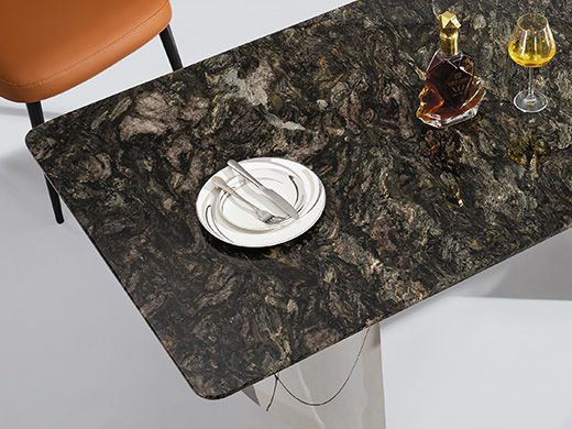 小红书系列 轻奢 桌面:天然石+绒布底板脚架:不锈钢黑钛 1.6米餐桌¥4591