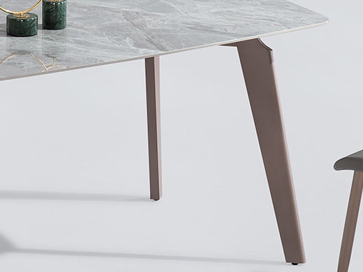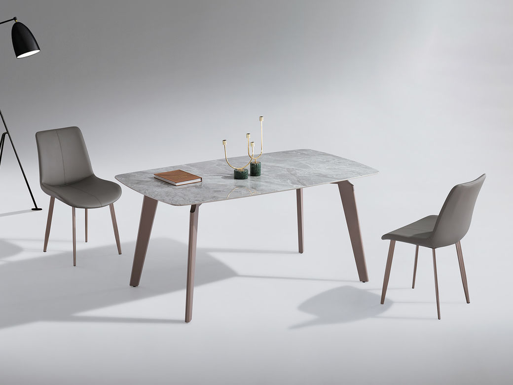 甄品家具 轻奢 桌面:天然石18mm+常规底板脚架:不锈钢灰钛拉丝 1.4米餐桌