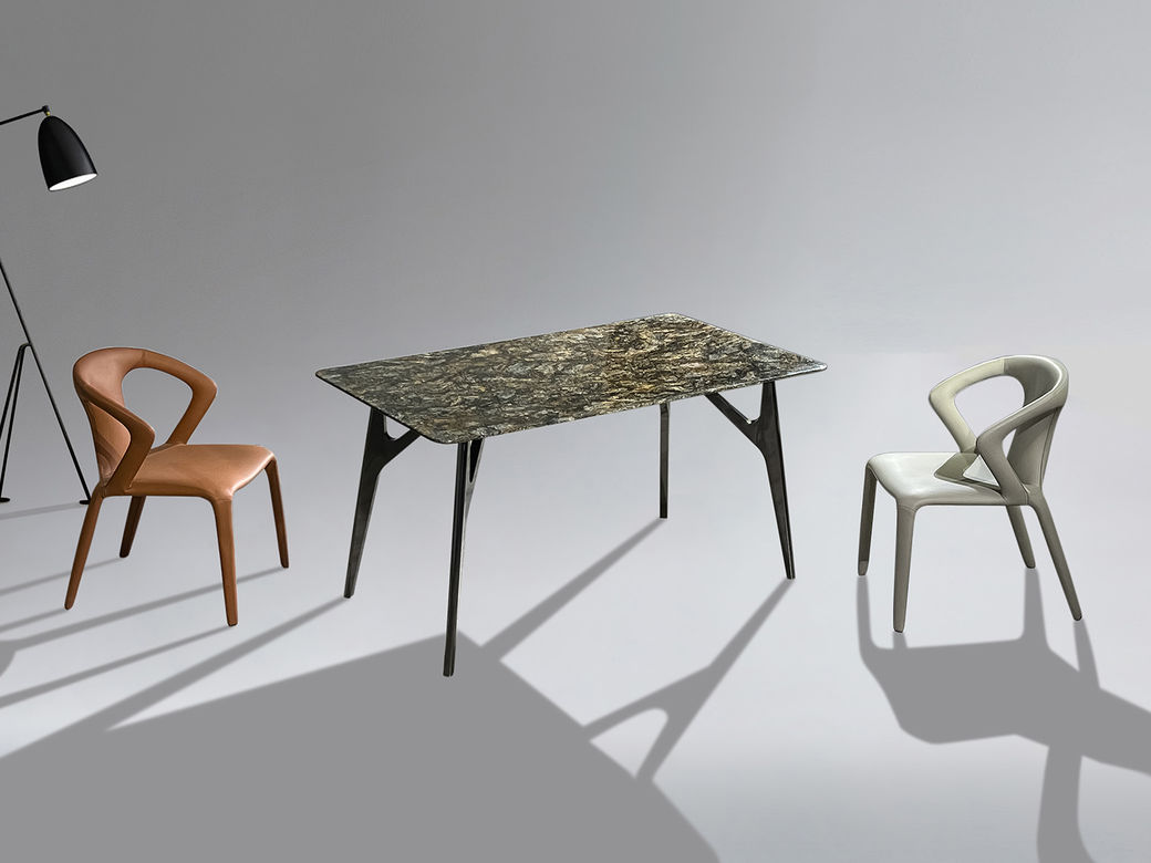 甄品家具 轻奢 桌面:天然石18mm+常规底板脚架:不锈钢灰钛拉丝 1.4米餐桌¥4919