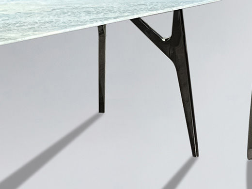 甄品家具 轻奢 桌面:天然石18mm+常规底板脚架:不锈钢灰钛拉丝 1.4米餐桌¥4919