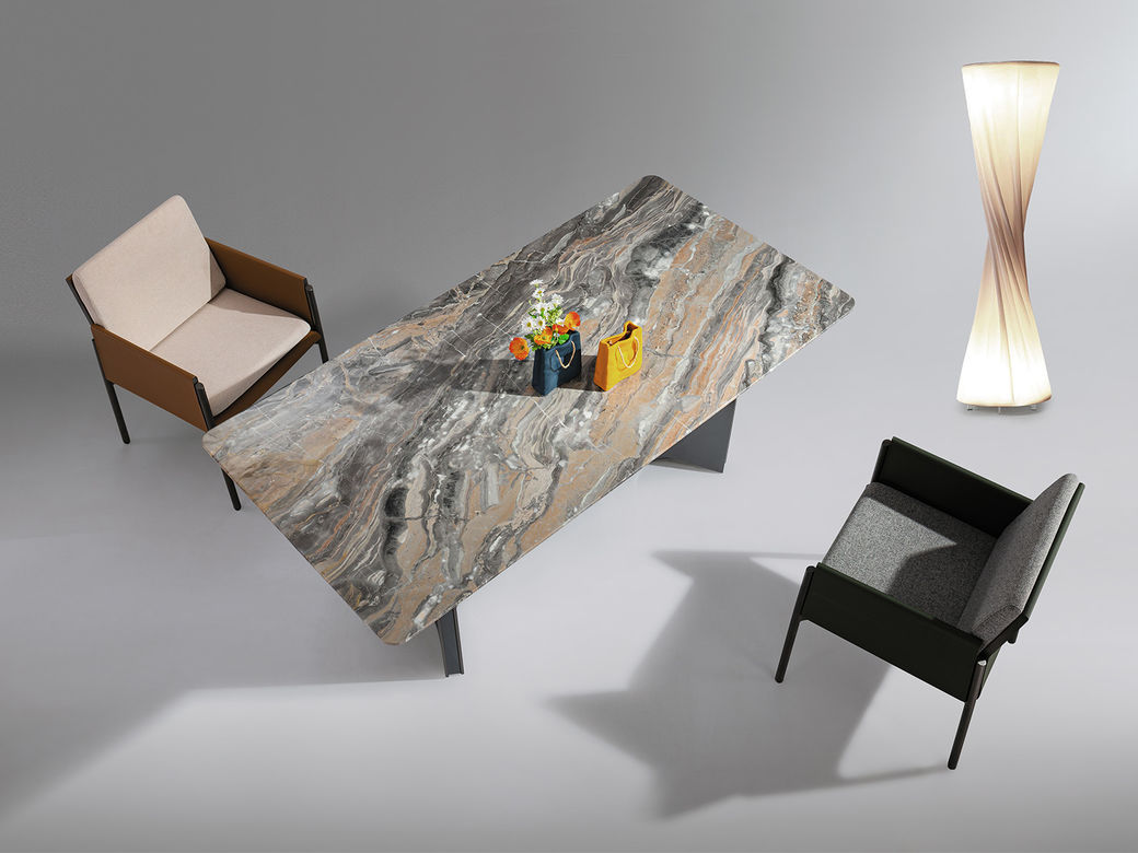 小红书系列 轻奢 桌面:天然石+绒布底板脚架:不锈钢黑钛 1.6米餐桌