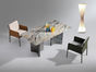 小红书系列 轻奢 桌面:天然石+绒布底板脚架:不锈钢钛金+马鞍皮 1.6米餐桌