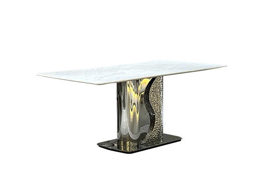 甄品家具 轻奢 桌面:天然石+绒布底板脚架:不锈钢镜面+水波纹 1.6米餐桌
