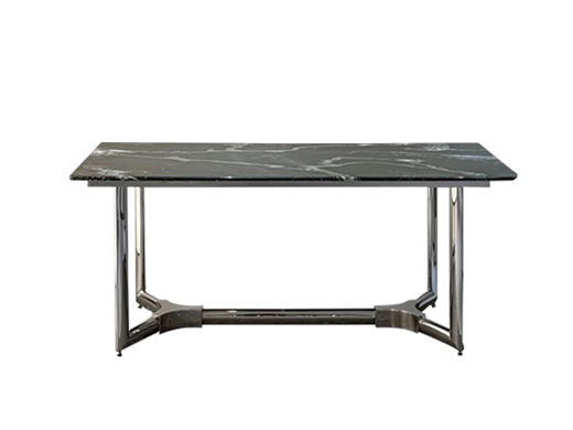 甄品家具 轻奢 桌面:天然石18mm+常规底板脚架:不锈钢灰钛拉丝 1.6米餐桌¥12175