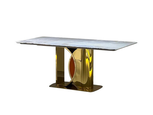 小红书系列 轻奢 桌面:天然石脚架:铝合金镀金 1.6米餐桌¥12831