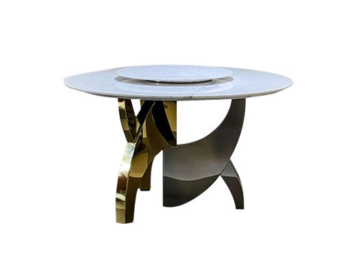 小红书系列 轻奢 桌面:天然石+绒布底板脚架:不锈钢镜面 【配转盘】1.35米餐桌¥16671