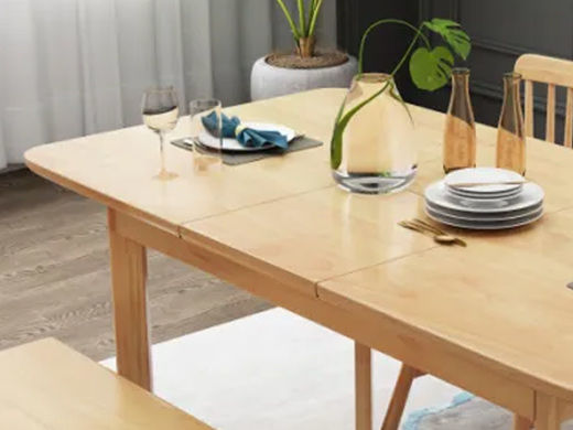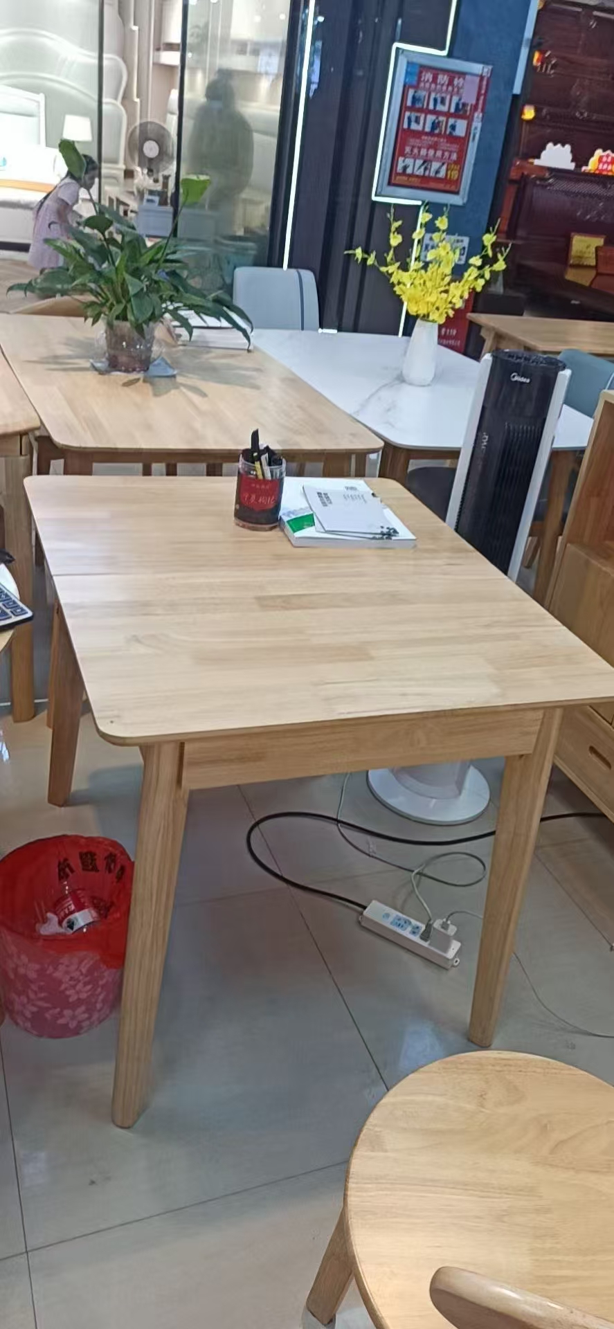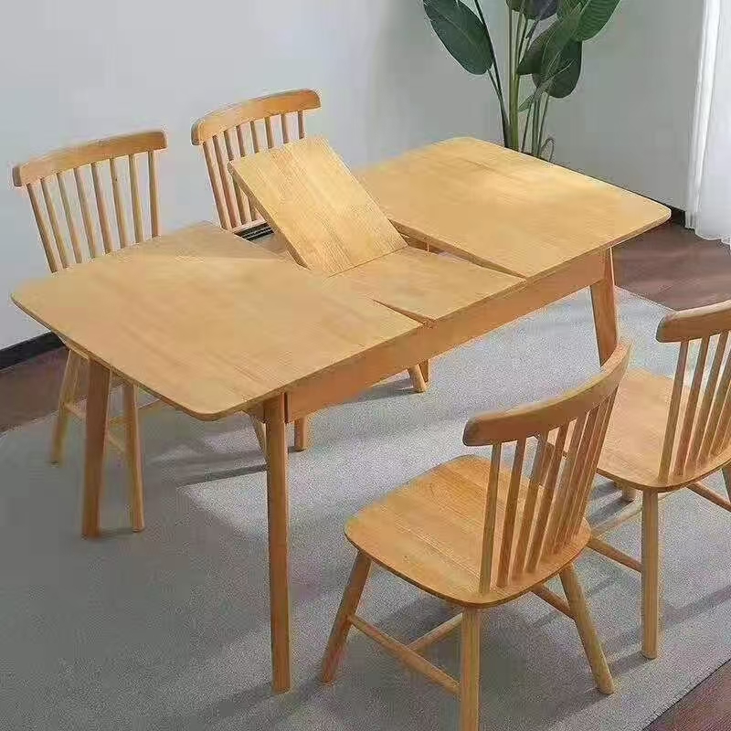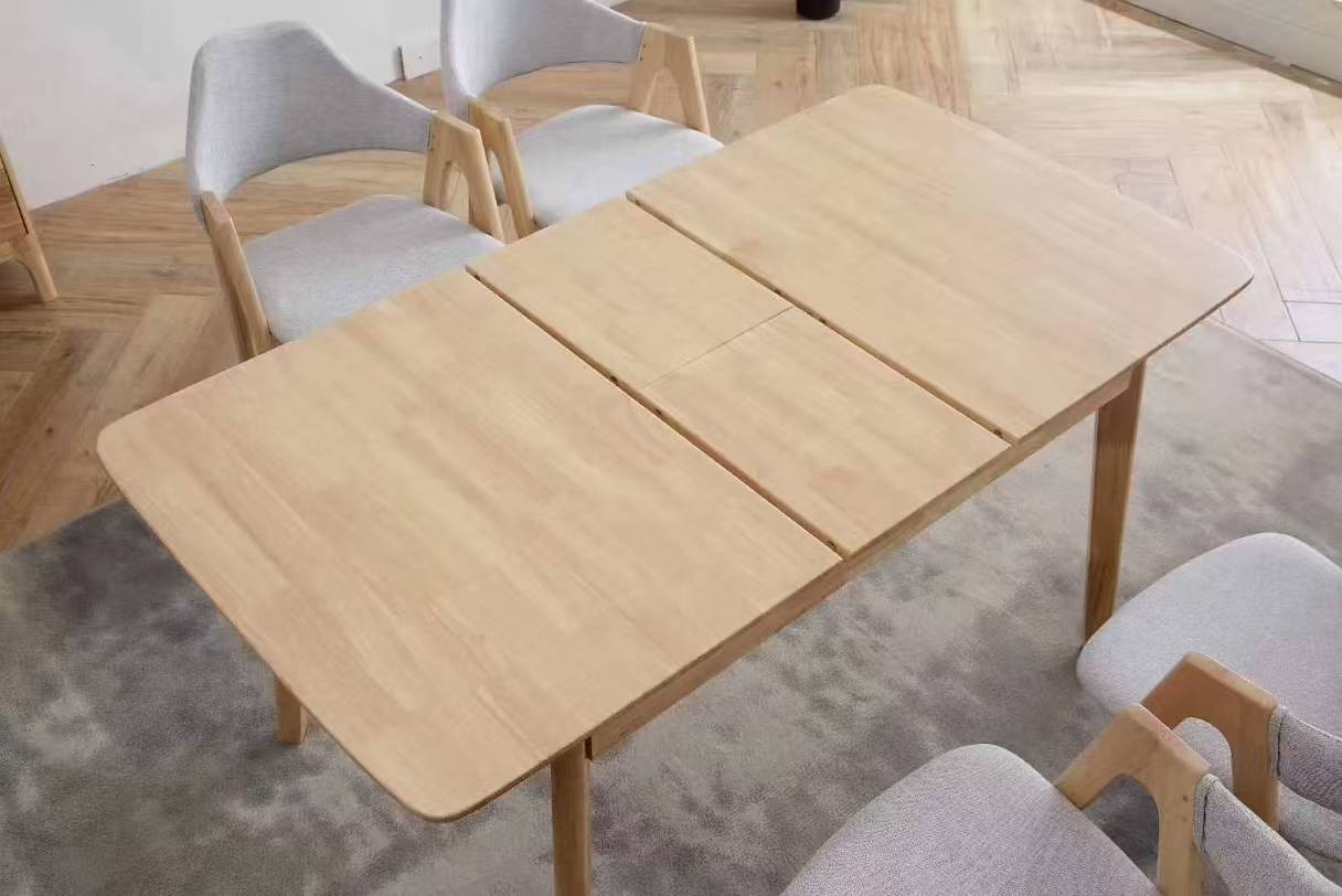 简森曼 北欧风 橡胶木 功能 拉伸 原木色 跳台1.35米餐桌 【实木拼接工艺】
