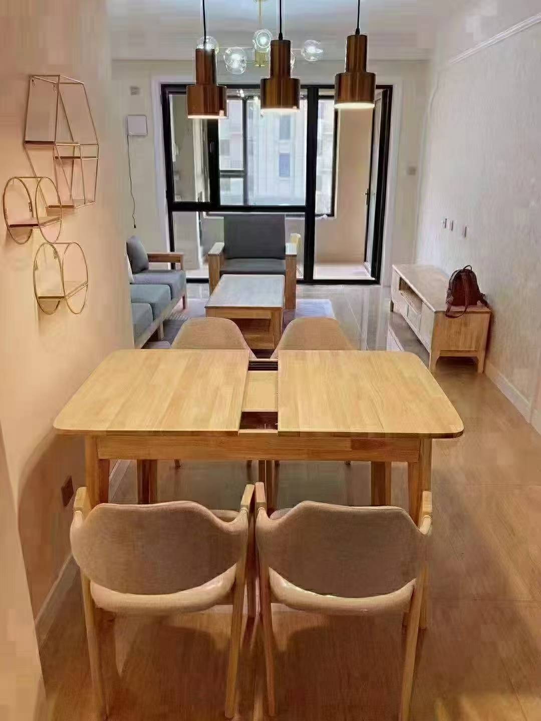 简森曼 北欧风 橡胶木 功能 原木色 伸缩拉1.2米餐桌 【实木拼接工艺】