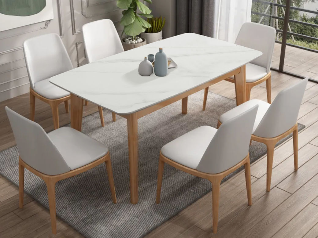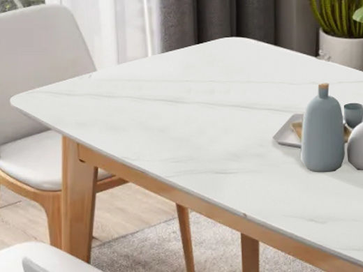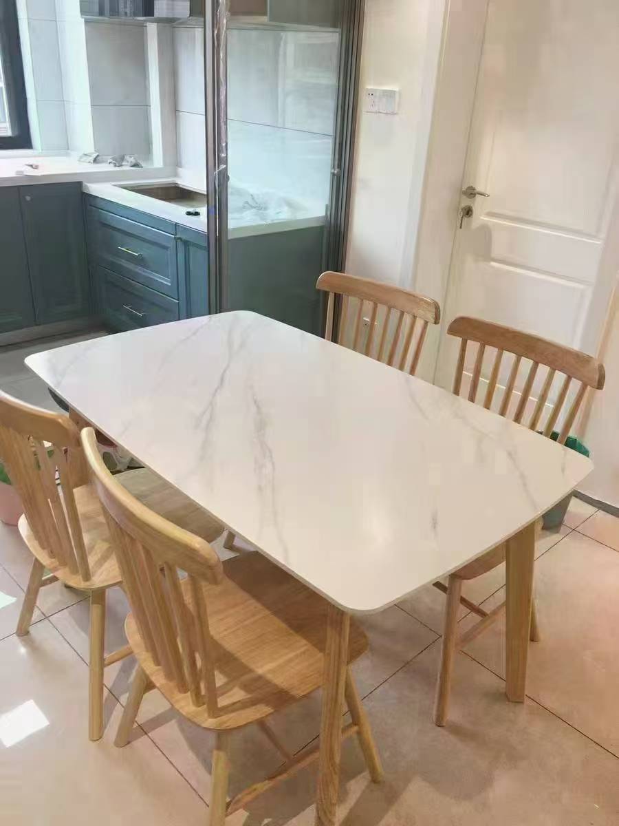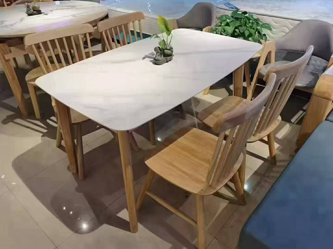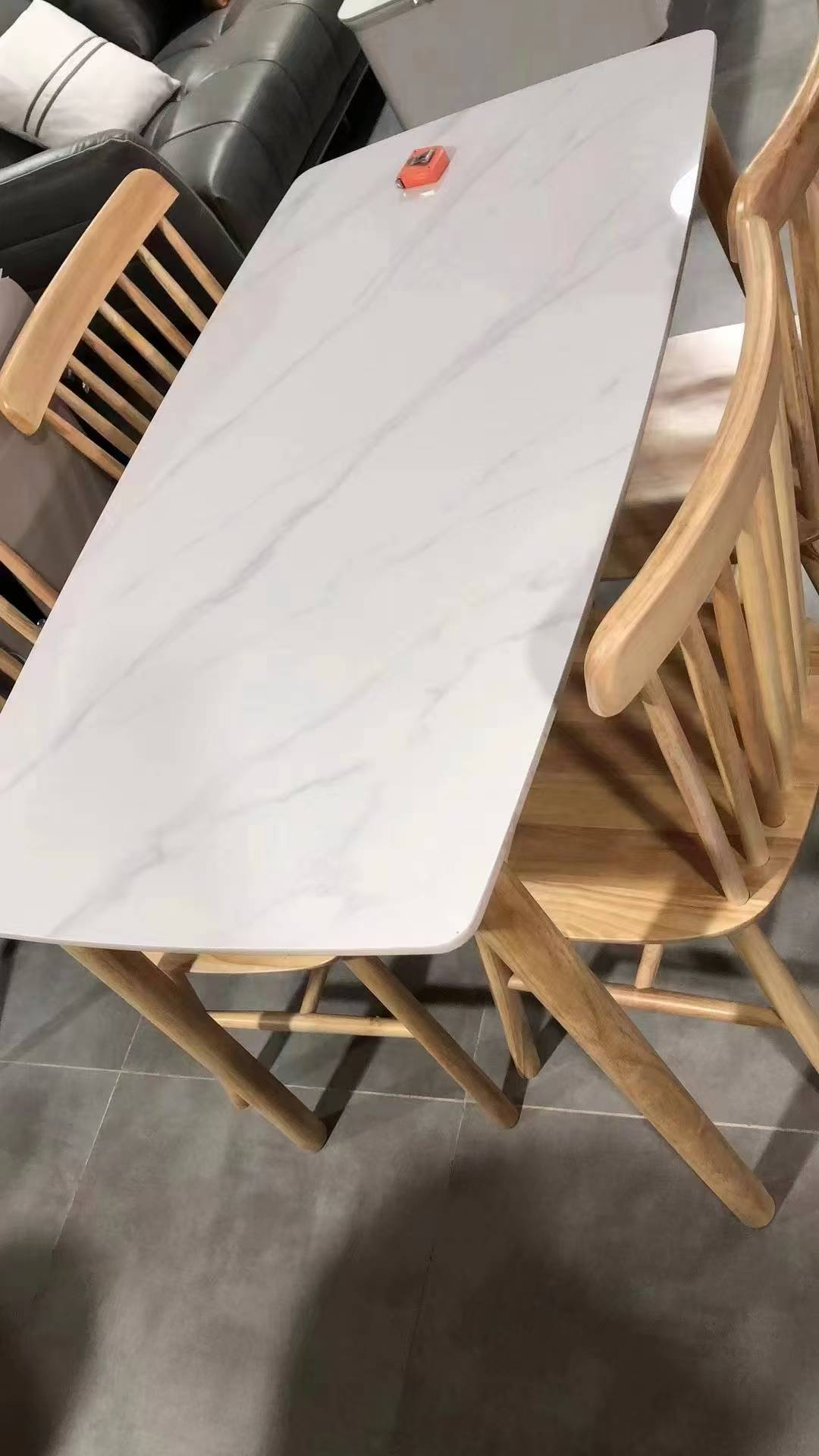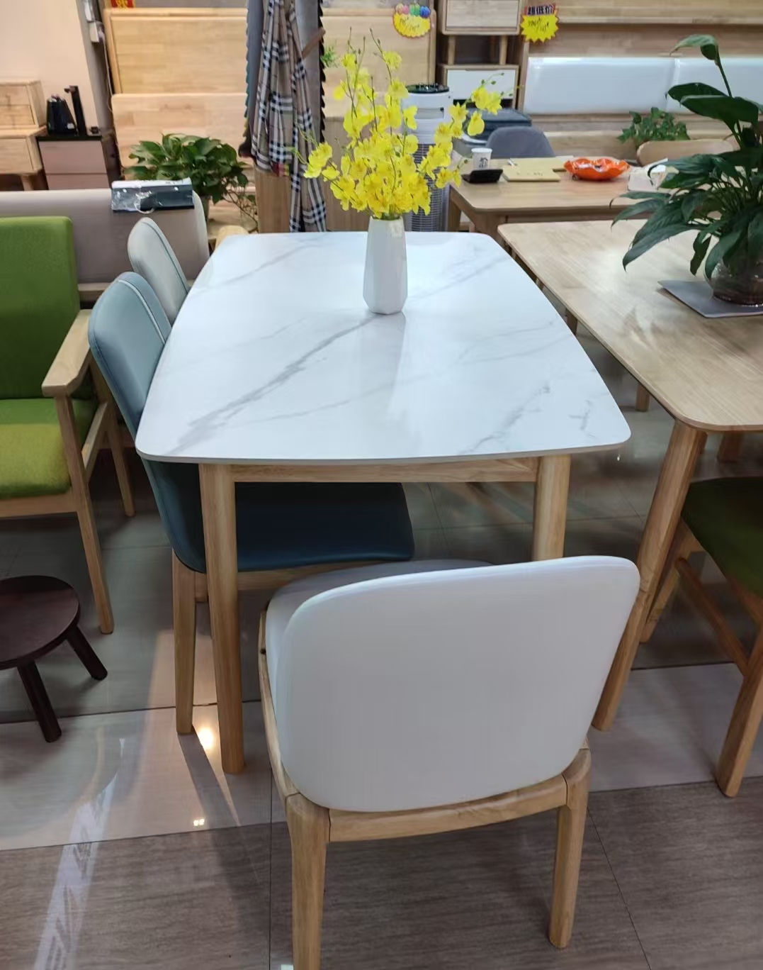 简森曼 北欧风 脚橡胶木 原木色 1.2米雪山石哑光岩板餐桌 【实木拼接工艺】 |