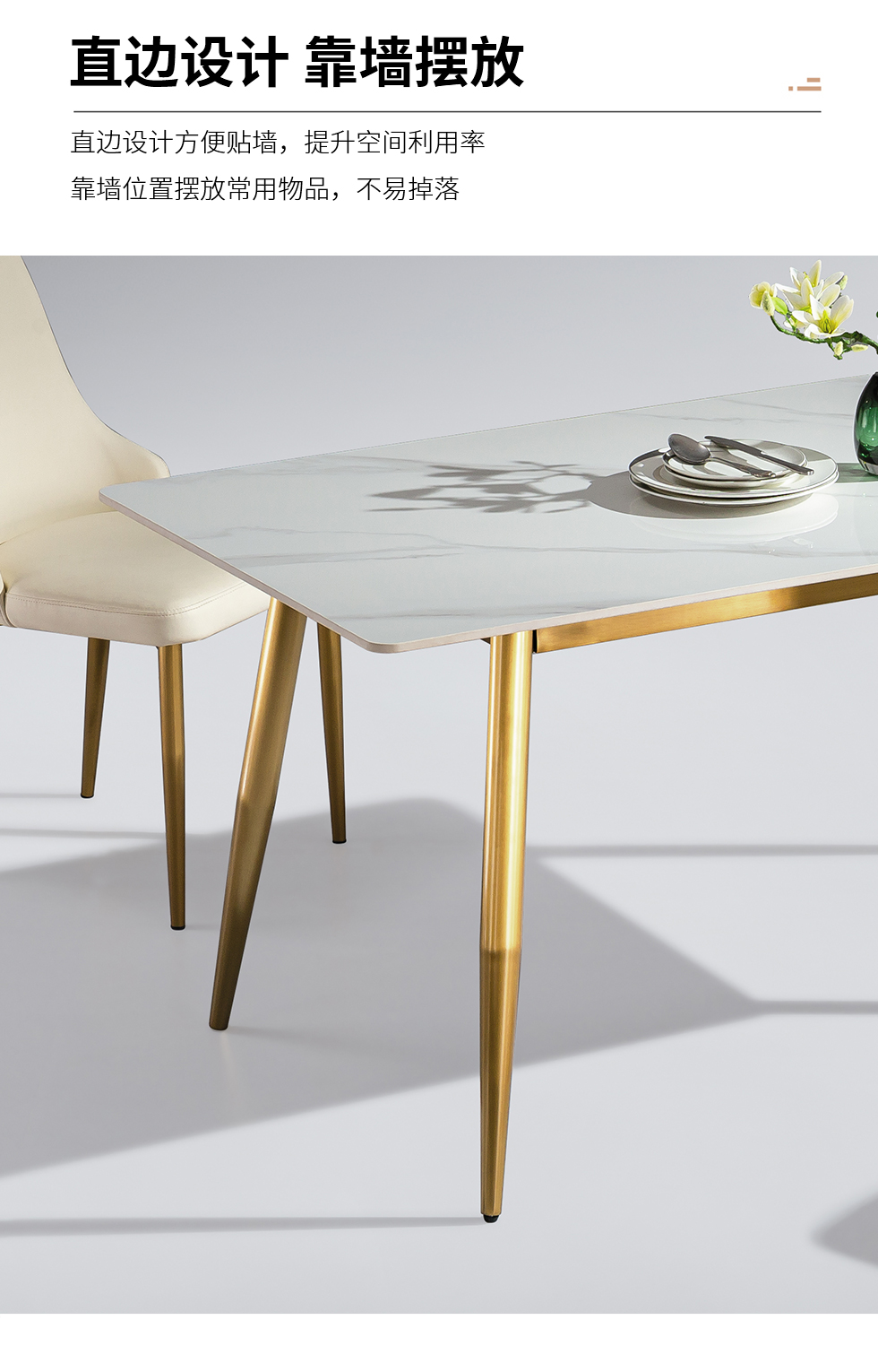 【套餐专享价】每屋优享系列 极简 桌面:岩板脚架:不锈钢钛金 1.4米餐桌(带底板) |