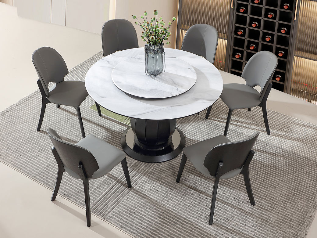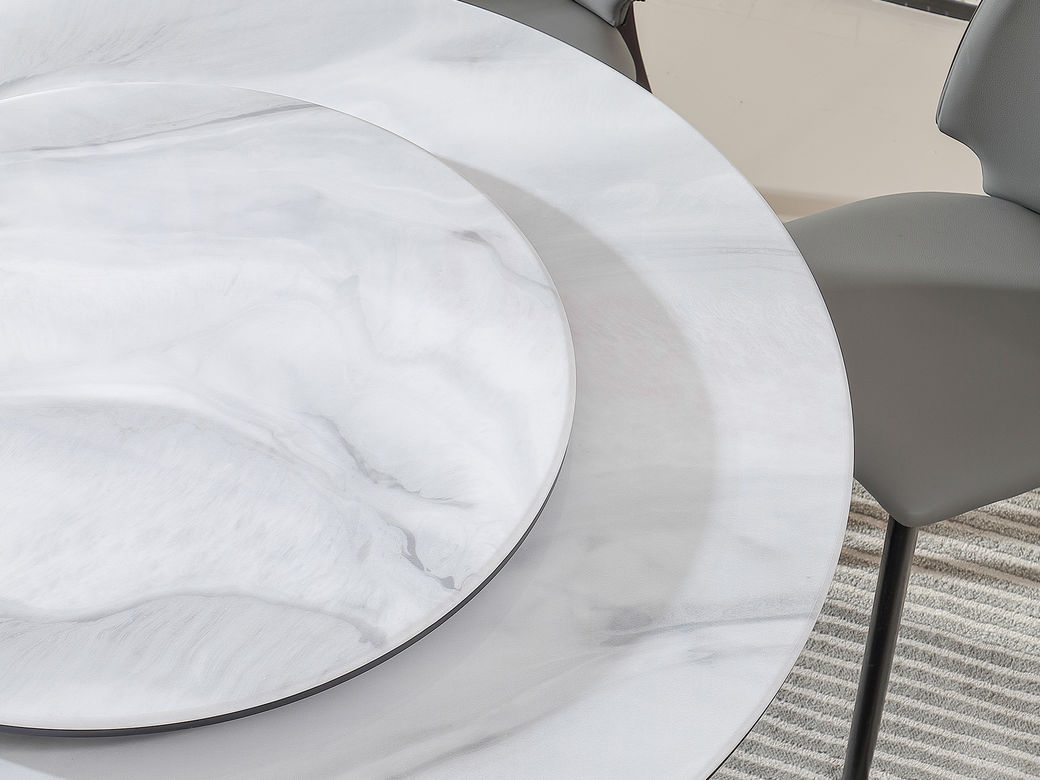 拉斐尔 轻奢 木纹木皮+多层实木板+电镀不锈钢+钢琴烤漆+岩板 1.35米餐桌(含转盘)
