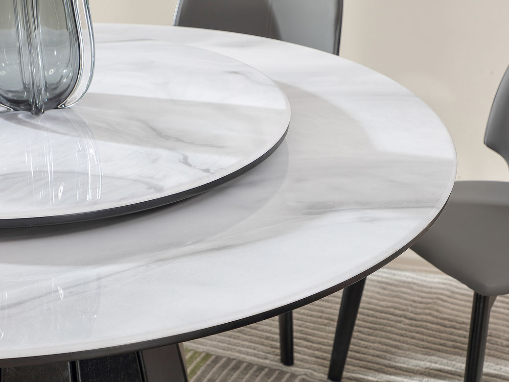 甄品家具 极简 桌面:岩板+底板脚架:黑砂碳素钢【配转盘】 1.35米餐桌¥4791