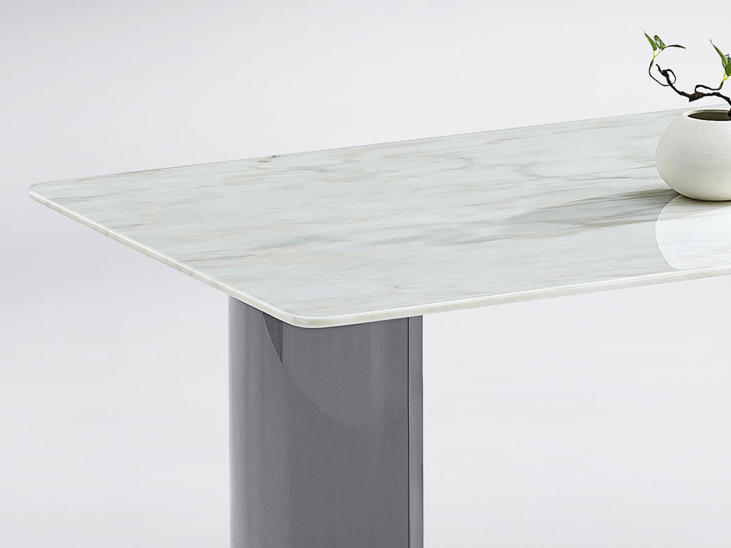 甄品家具 现代简约 卡里冰玉天然石+电镀不锈钢五金 1.4米长餐桌