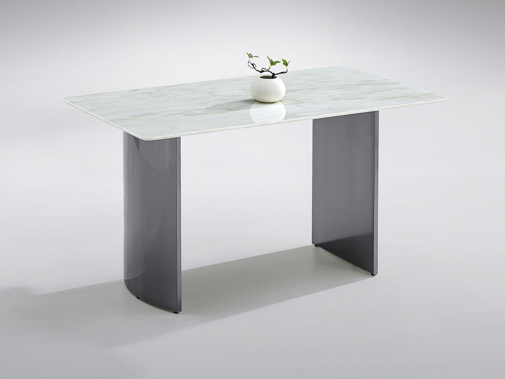 甄品家具 轻奢 桌面:天然石18mm+常规底板脚架:不锈钢灰钛拉丝 1.4米餐桌¥5247