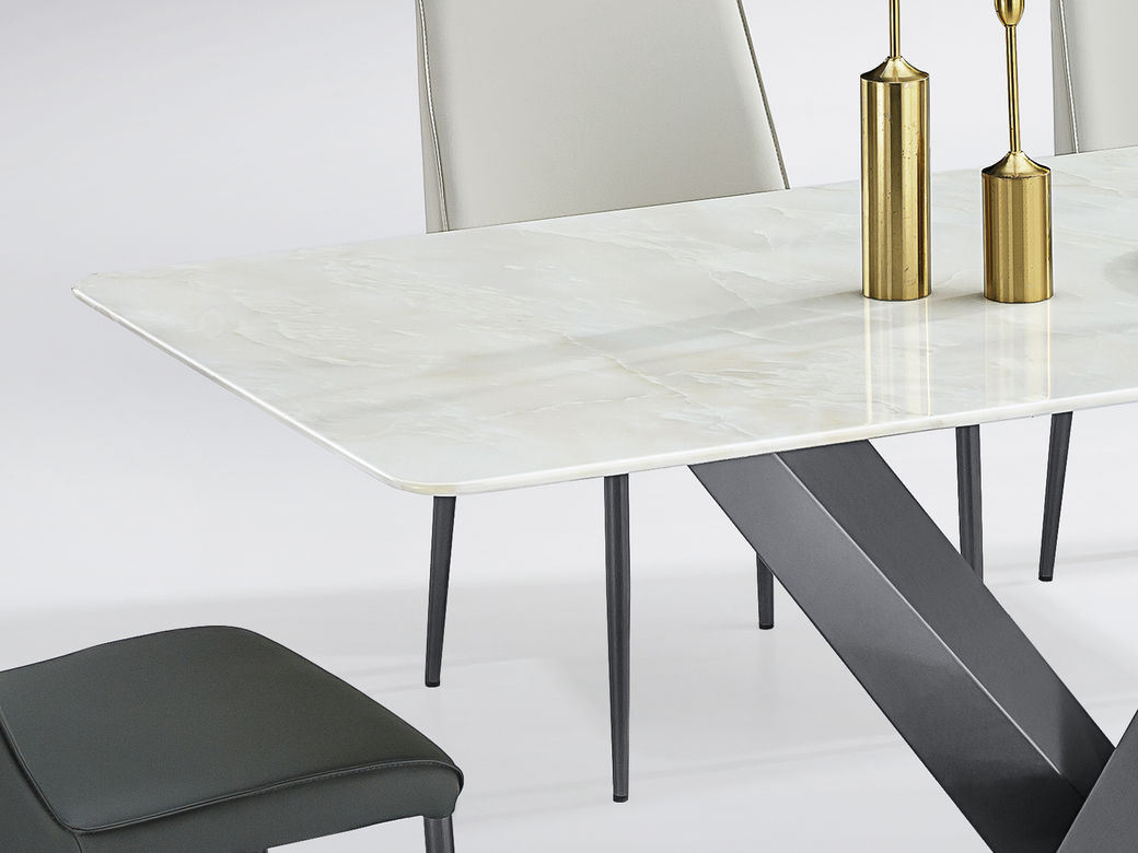 甄品家具 现代简约 新芬迪白天然石+多层实木板+天然木皮 1.8米长餐桌¥4591