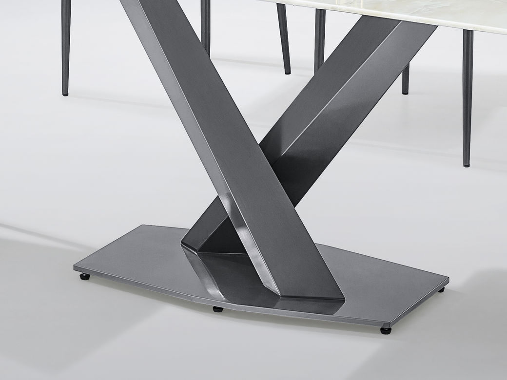甄品家具 轻奢 桌面:天然石18mm+常规底板脚架:不锈钢灰钛拉丝 1.4米餐桌¥5247