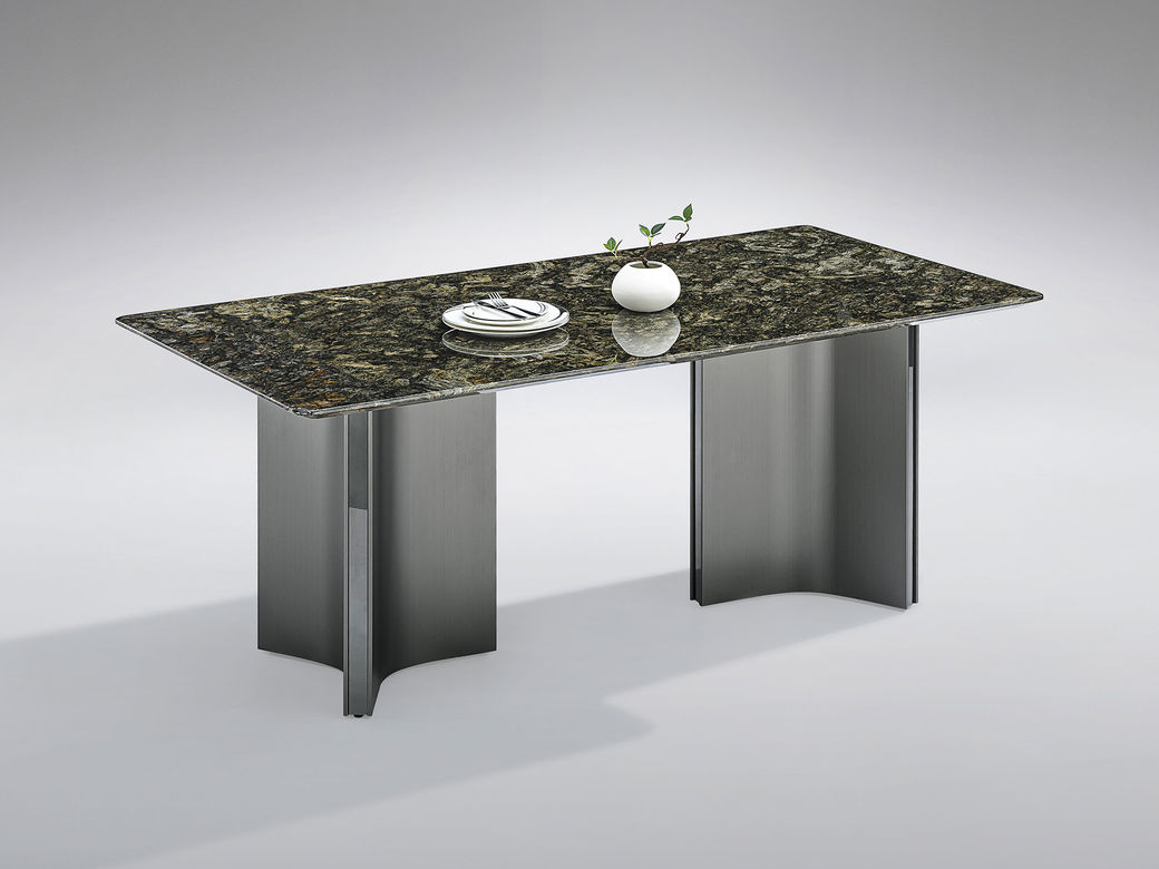 小红书系列 现代简约 璀璨星河天然石+电镀不锈钢五金+底板 1.6米长餐桌