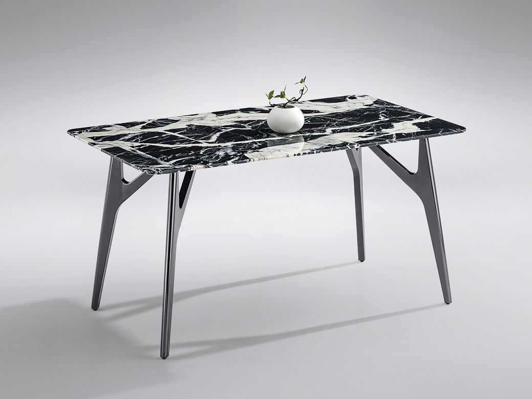 甄品家具 轻奢 桌面:天然石18mm+常规底板脚架:不锈钢灰钛拉丝 1.4米餐桌¥5247