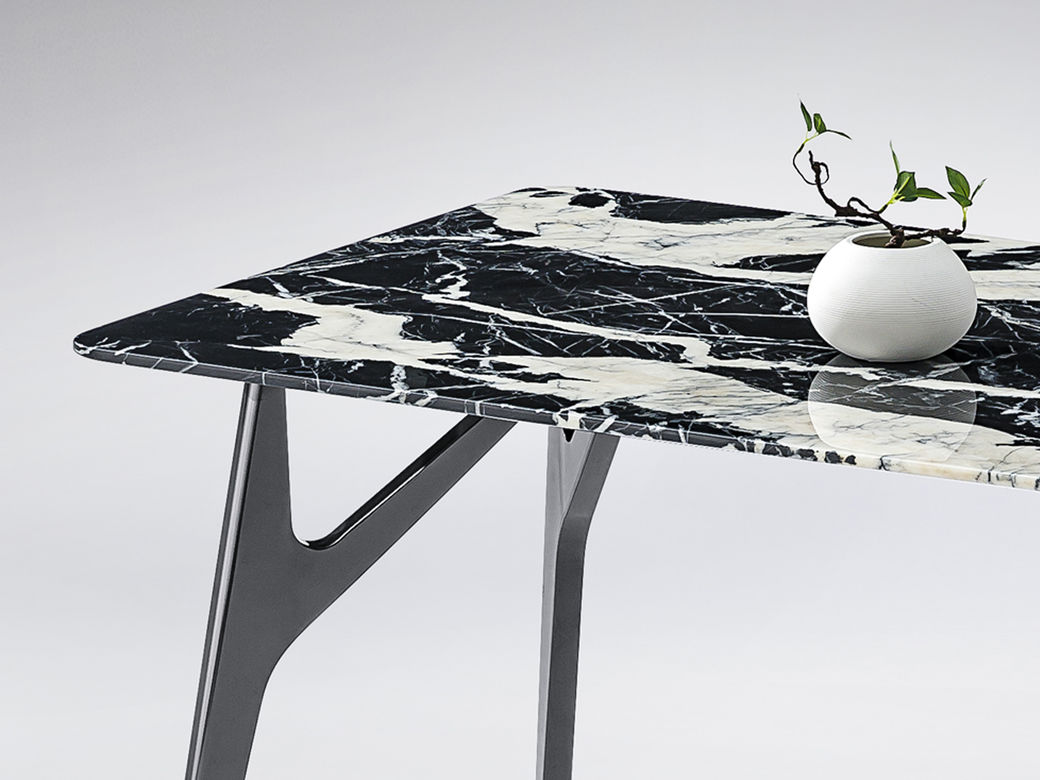 甄品家具 极简 桌面:天然石18mm+绒布底板脚架:不锈钢黑钛脚架 1.4米餐桌¥4919