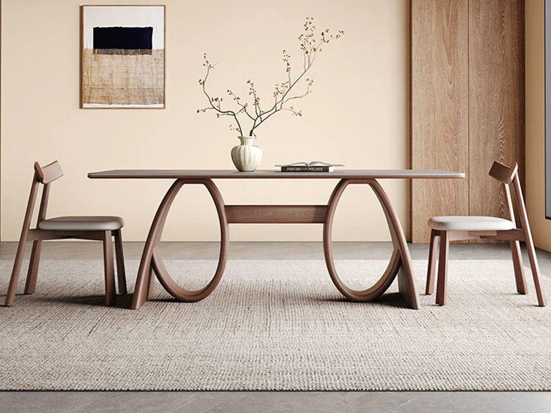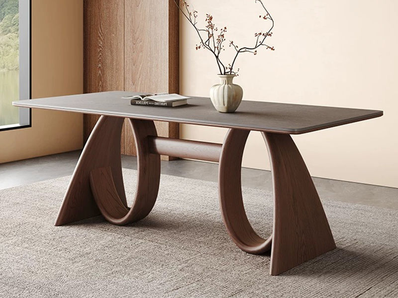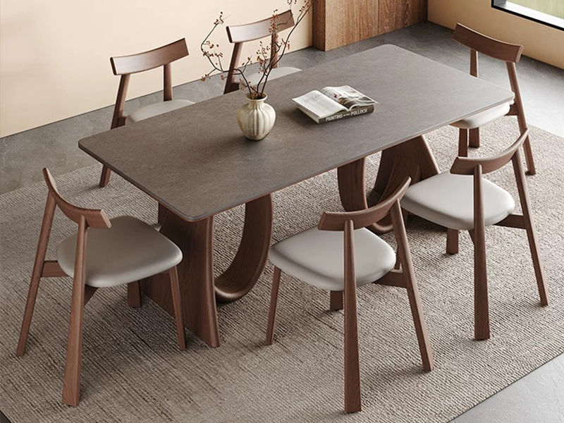 中古·尚 中古风 岩板+E1级中纤板+仿真木皮+底板 1.4米餐桌
