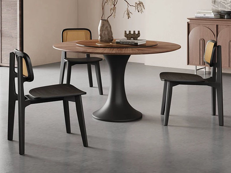 中古·尚 中古风 多层实木板+仿真木皮+碳素钢五金脚(不含转盘) 1.2米餐桌