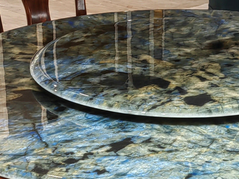 归鹊 新中式 乌金木+大理石面(含转盘) 1.38米 圆餐桌