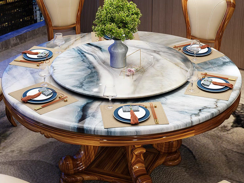 归鹊 新中式 乌金木+大理石面(含转盘) 1.38米 圆餐桌