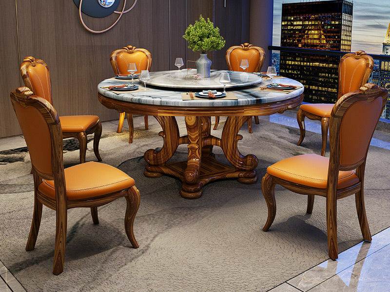归鹊 新中式 乌金木+大理石面(含转盘) 1.38米 圆餐桌¥14275