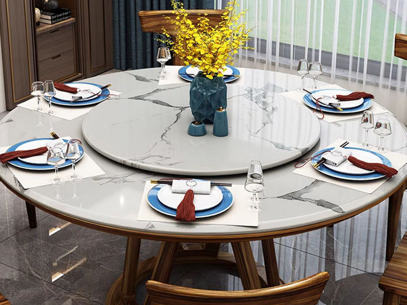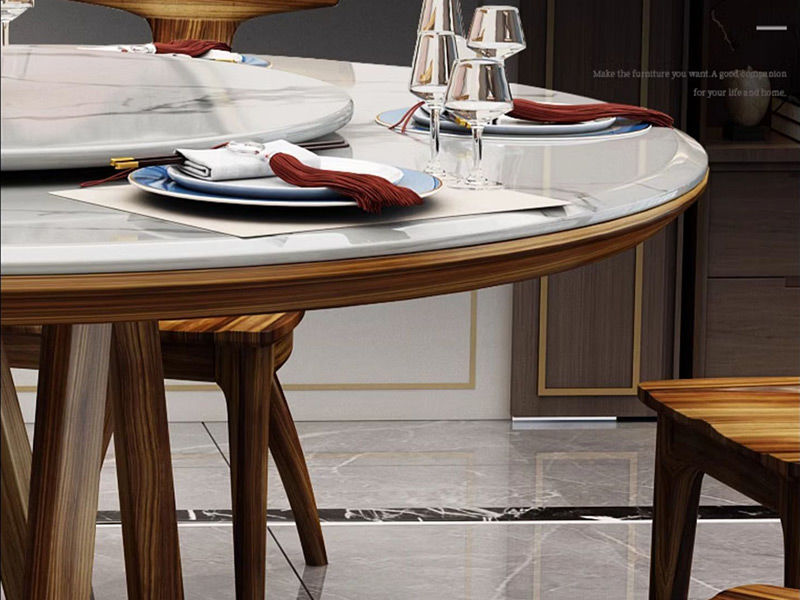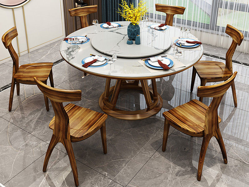 归鹊 新中式 乌金木+大理石面(含转盘) 1.38米 圆餐桌