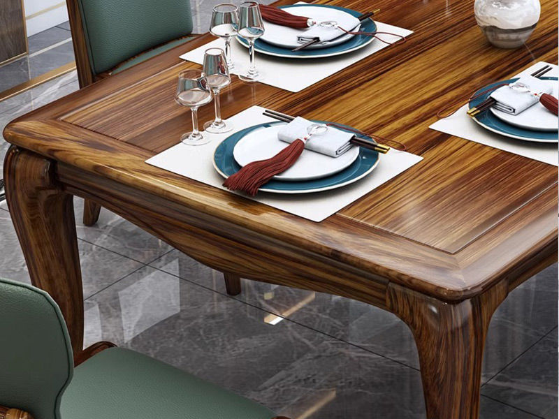 美檀家居 新中式 进口黑檀木+岩板 黑檀色 1.48米餐台