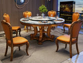 归鹊 新中式 乌金木+大理石面(含转盘) 1.38米 圆餐桌¥11716
