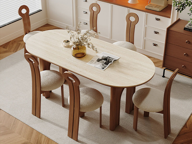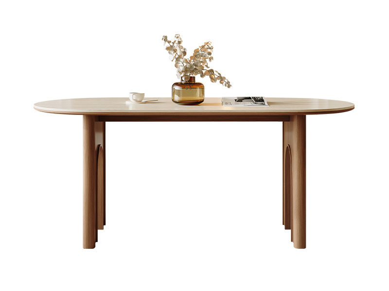 贝斯solo 设计师 网红 极简 夹板贴木皮+黄洞石岩板 1.4米 长餐桌