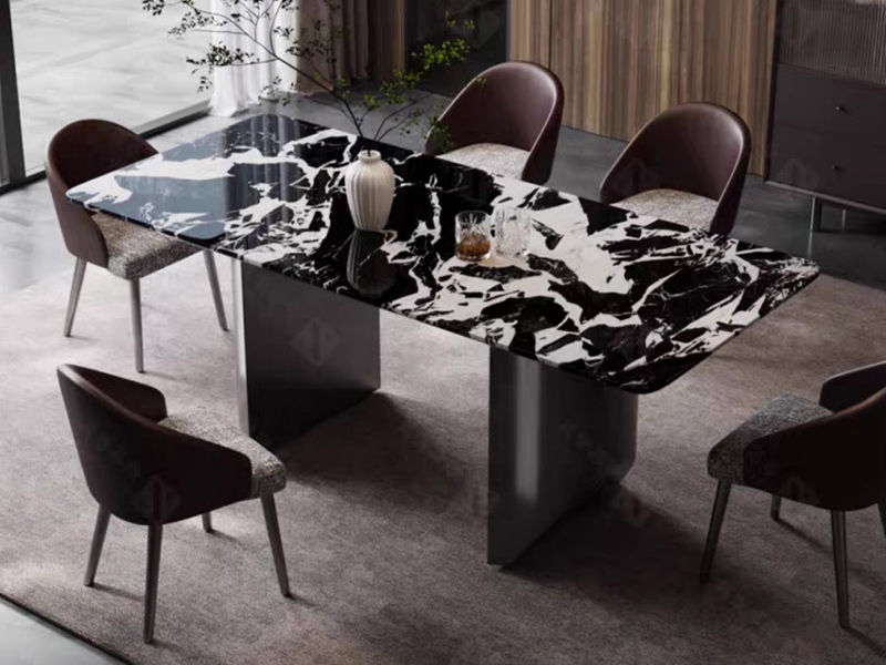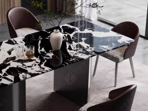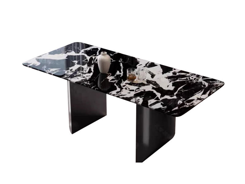 小红书系列 极简 进口天然奢石+TY23不锈钢底座+加厚下斜边+封釉底板 1.4米 长餐桌¥45061