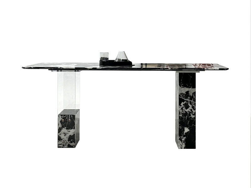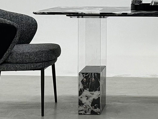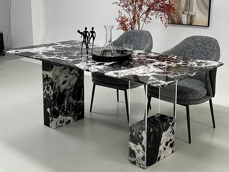 贝斯solo 设计师 网红 极简 宝格丽黑人造大理石+亚克力 1.4米 长餐桌