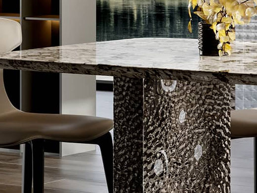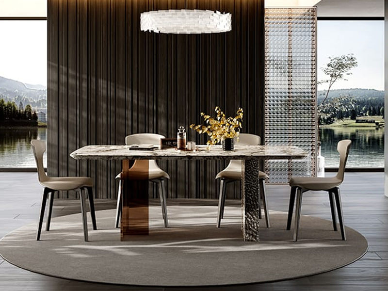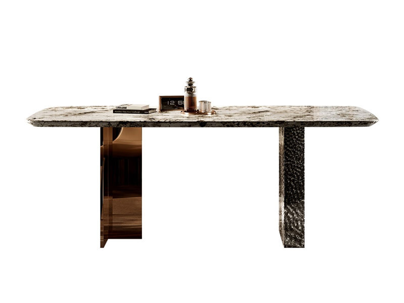 柏翠丝 网红 天然黑玫瑰奢石+TY36不锈钢底座+加厚下斜边+封釉底板 1.4米 长餐桌¥10022