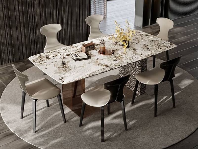贝斯solo 网红 极简 不锈钢脚架+加厚边皇家白玉奢石桌面 方形 1.6米 奢石餐桌¥6557