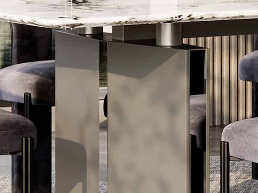 小红书系列 极简 桌面:天然石+绒布底板脚架:不锈钢本色亮光+黑胡桃 1.6米餐桌¥6859